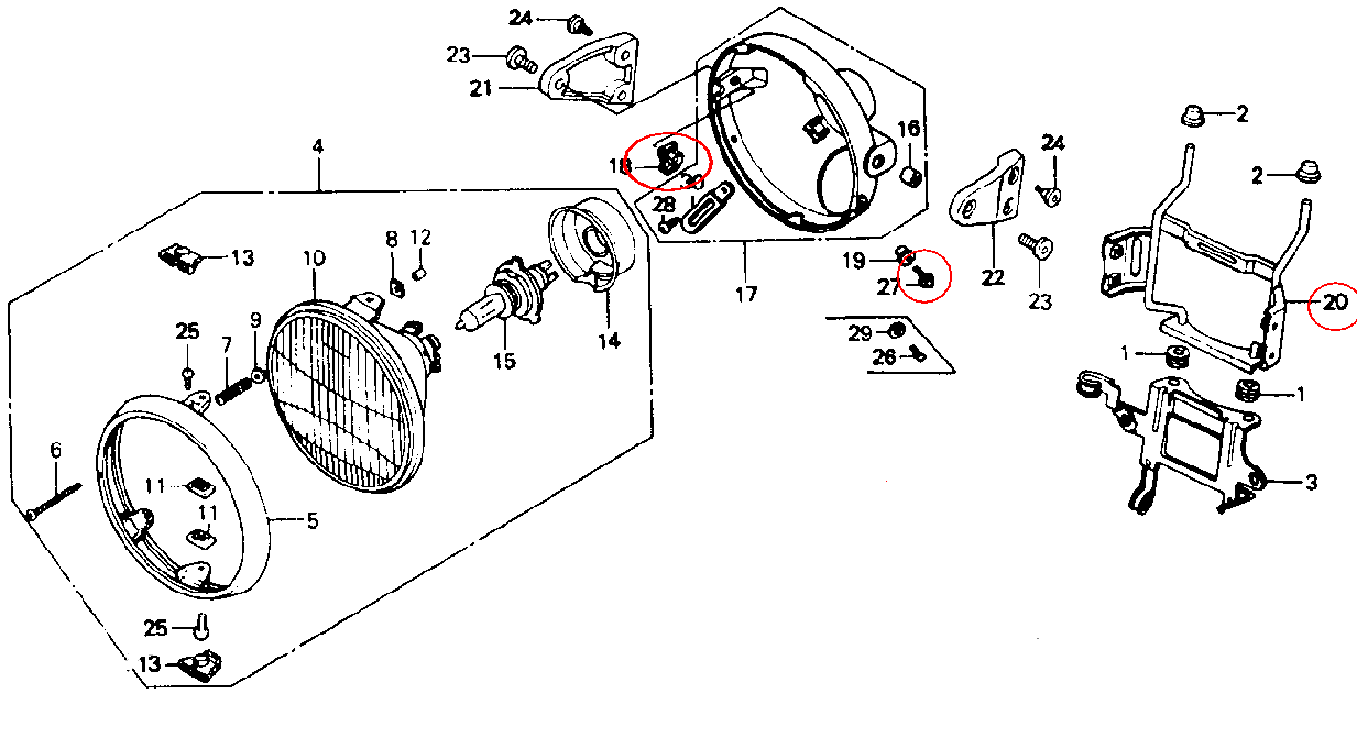 There are some of the stock headlight parts you'll need to reuse: