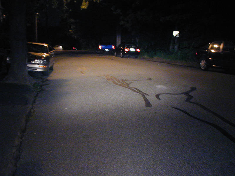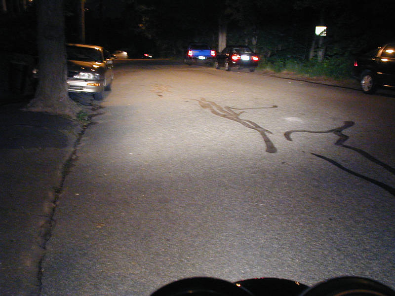 These are unretouched photos I took in front of my house at about midnight, using an Olympus D490-zoom digital camera, using only the automatic settings.